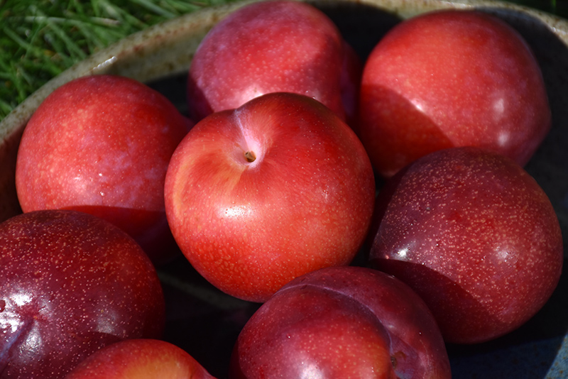 Santa Rosa Plum is a small tree that is typically grown for its edible qualities. It produces crimson round fruit (technically 'drupes') with yellow flesh which are usually ready for picking in late summer. Note that the fruits have hard inedible pits inside which must be removed before eating or processing. The fruits have a sweet taste and a juicy texture.