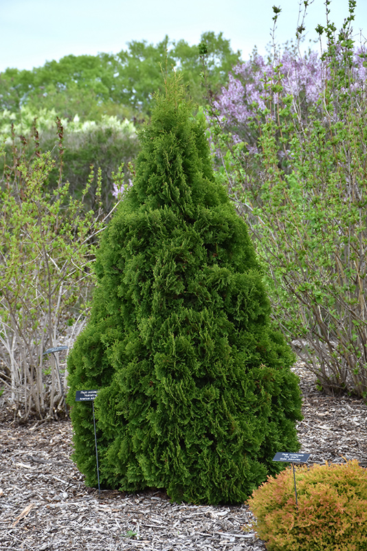 Holmstrup Arborvitae is a dwarf conifer which is primarily valued in the landscape or garden for its rigidly columnar form. It has forest green evergreen foliage which emerges light green in spring. The scale-like sprays of foliage remain forest green throughout the winter.