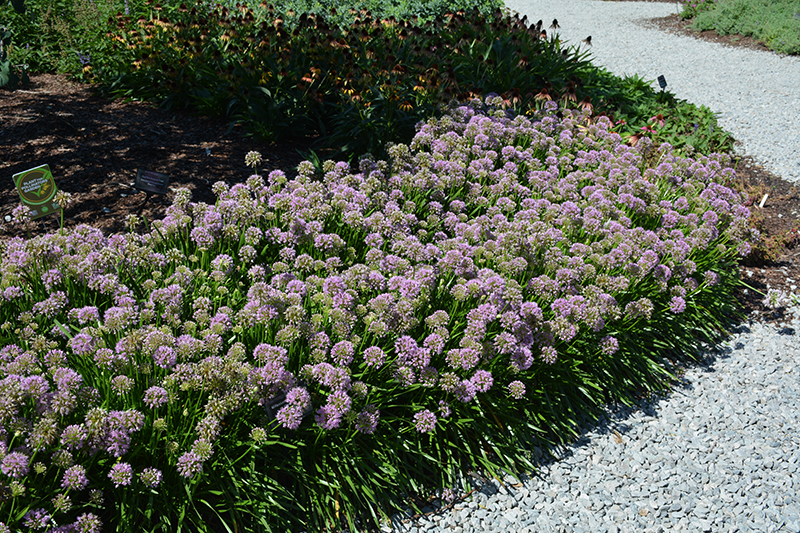 Millenium Ornamental Onion will grow to be about 12 inches tall at maturity extending to 20 inches tall with the flowers, with a spread of 15 inches. It grows at a medium rate, and under ideal conditions can be expected to live for approximately 5 years. As an herbaceous perennial, this plant will usually die back to the crown each winter, and will regrow from the base each spring. Be careful not to disturb the crown in late winter when it may not be readily seen! As this plant tends to go dormant in summer, it is best interplanted with late-season bloomers to hide the dying foliage.