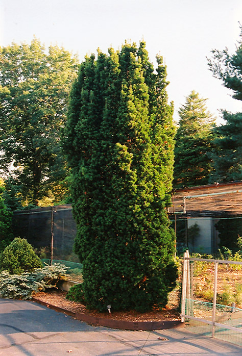 An extremely narrow and columnar evergreen shrub with dark green needles which emerge emerald green in spring; makes a great tall hedge or feature accent plant for articulation in the garden, takes pruning very well, does well in shade