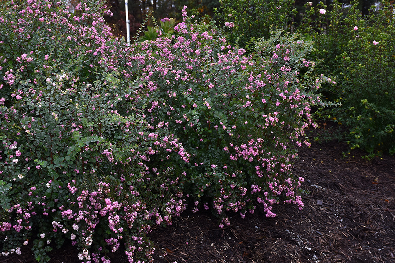 A rugged spreading shrub that produces small white to pink flowers in summer followed by bright shell pink berries with a white blush along arching branches in fall, great for cut flower arrangements