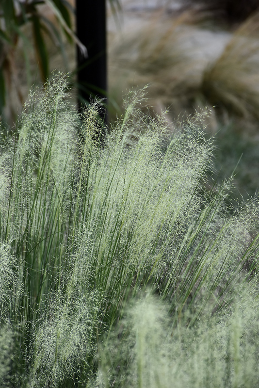 A mounding grass with very fine, glossy green foliage; airy plumes of white flowers in fall gives one a sense of fluffy clouds, that will eventually fade to tan seed pods in late fall and winter; breathtaking planted in masses