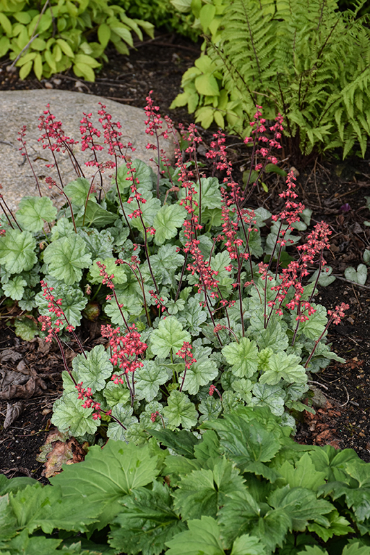 Dolce® Spearmint Coral Bells features showy spikes of pink bell-shaped flowers rising above the foliage from early to mid summer. Its attractive crinkled lobed leaves emerge light green in spring, turning grayish green in color with distinctive dark green veins and tinges of silver the rest of the year.