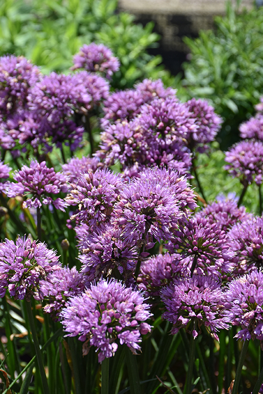A compact ornamental onion producing a clump of grass-like narrow foliage; lavender-purple florets appear in globular clusters on stalks above the foliage in summer; mildly fragrant; impressive when massed in groupings; great as a long lasting cut flower