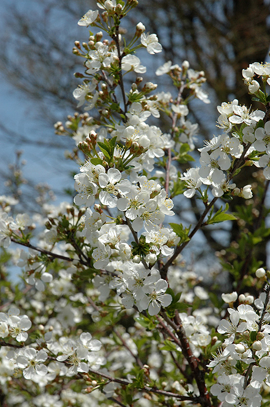 An exciting new development, this small upright fruit tree is prized for its tart nearly-black cherries in summer, excellent for jams and pies, as well as showy white flowers in spring; the hardiest sour (pie) cherry yet