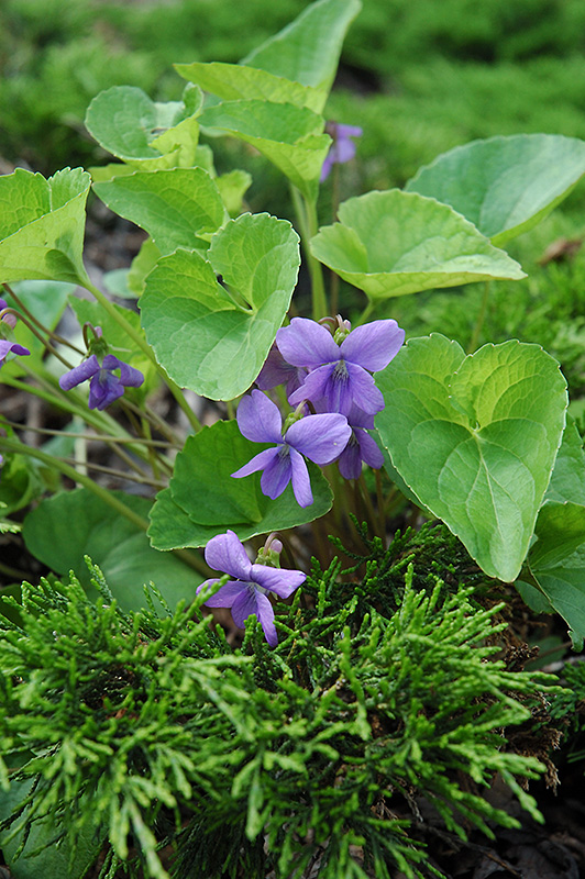 Wooly Blue Violet features delicate lilac purple flowers at the ends of the stems from early spring to mid summer, which emerge from distinctive white flower buds. Its tomentose heart-shaped leaves remain green in color throughout the season. The brick red stems are very colorful and add to the overall interest of the plant.