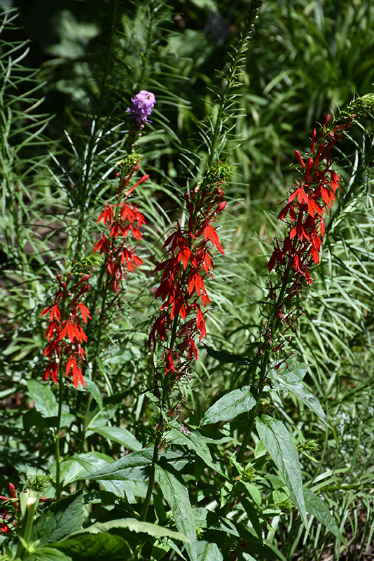 Cardinal Flower features showy spikes of scarlet flowers rising above the foliage from mid summer to early fall. The flowers are excellent for cutting. Its pointy leaves remain dark green in color throughout the season.