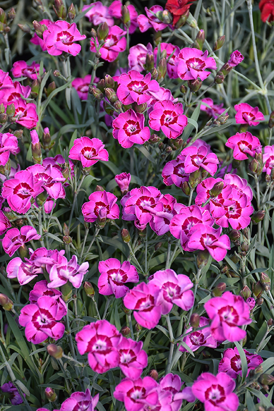 EverLast™ Violet Blue Pinks is smothered in stunning fragrant double violet frilly flowers with ruby-red centers at the ends of the stems from late spring to early fall. The flowers are excellent for cutting. Its attractive narrow leaves remain grayish green in color throughout the year.