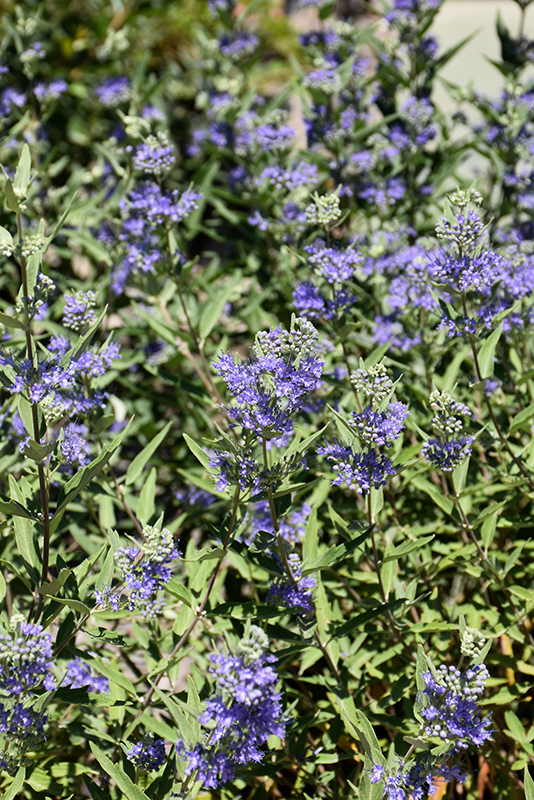 Blue Mist Caryopteris will grow to be about 3 feet tall at maturity, with a spread of 3 feet. It tends to fill out right to the ground and therefore doesn't necessarily require facer plants in front. It grows at a medium rate, and under ideal conditions can be expected to live for approximately 20 years.